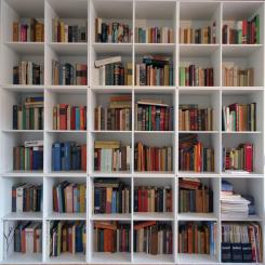 Wir haben im kleinen Wohn-/Schlafzimmer und vor allem in der Bücherwand im Arbeitszimmer (Bild) einige hundert Bücher zum Lesen. Für sehr reichlich Urlaubsliteratur ist also gesorgt.